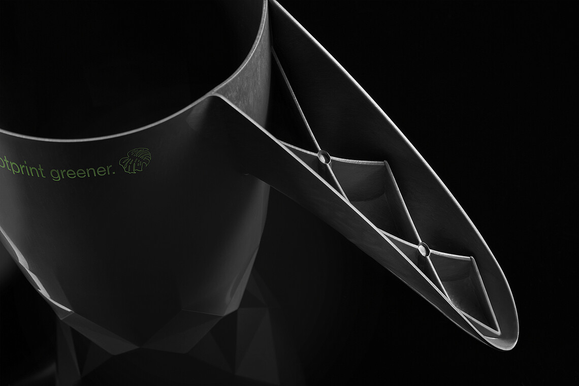 With its clear geometric shapes, the watering can has an almost futuristic look and blends perfectly into any household with its muted colors. Skillful design highlights give it that special something. There are no limits to the imagination: From bright color accents to elegant metallization, anything is possible. The decorations can be applied using the Hot Stamping process - a more environmentally friendly technology than conventional lacquering. The recyclability of the watering can made from RECOPOUND® is retained.